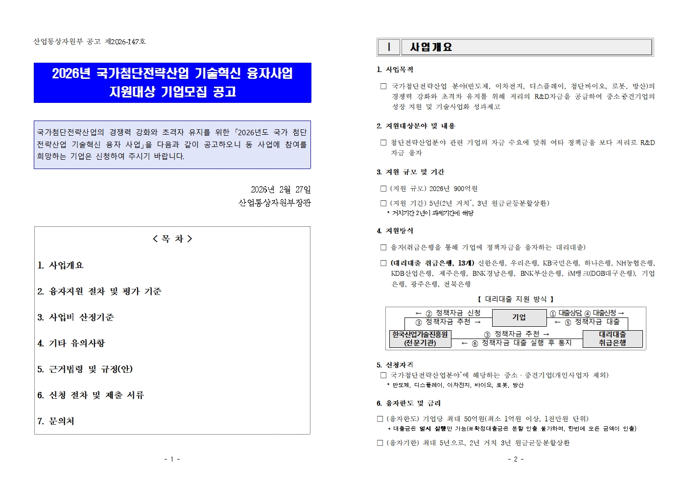 | 2026년 국가첨단전략산업 기술혁신 융자사업 지원대상 기업모집 공고 | |||