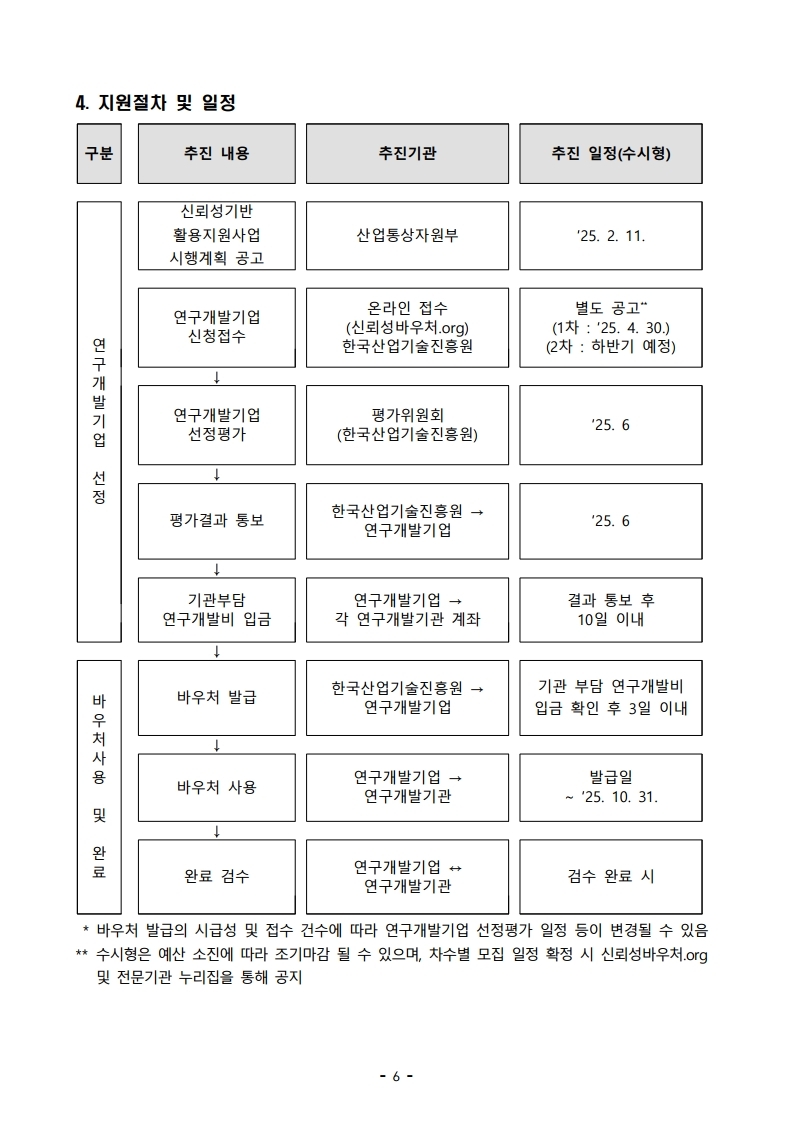 2025년도 「신뢰성기반활용지원사업」 수시형(1차) 참여기업 모집공고
