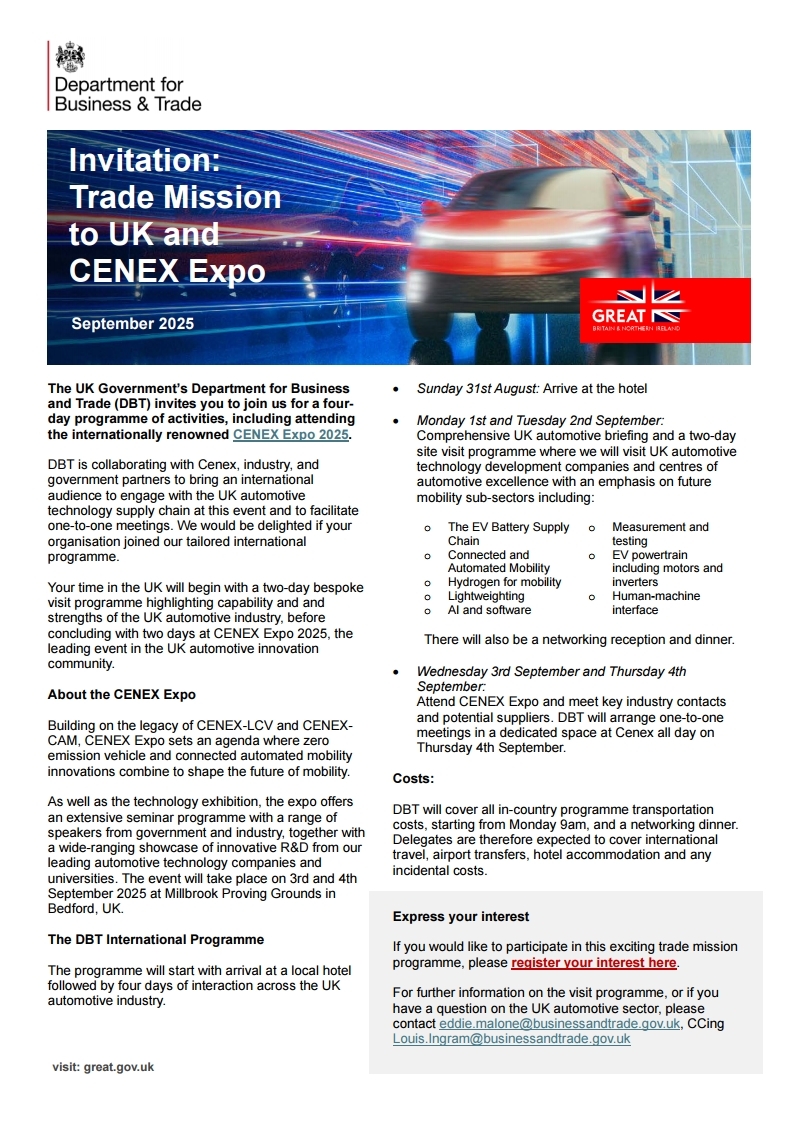 | 영국 정부 주관 CENEX 2025 해외 사절단 프로그램 | |||