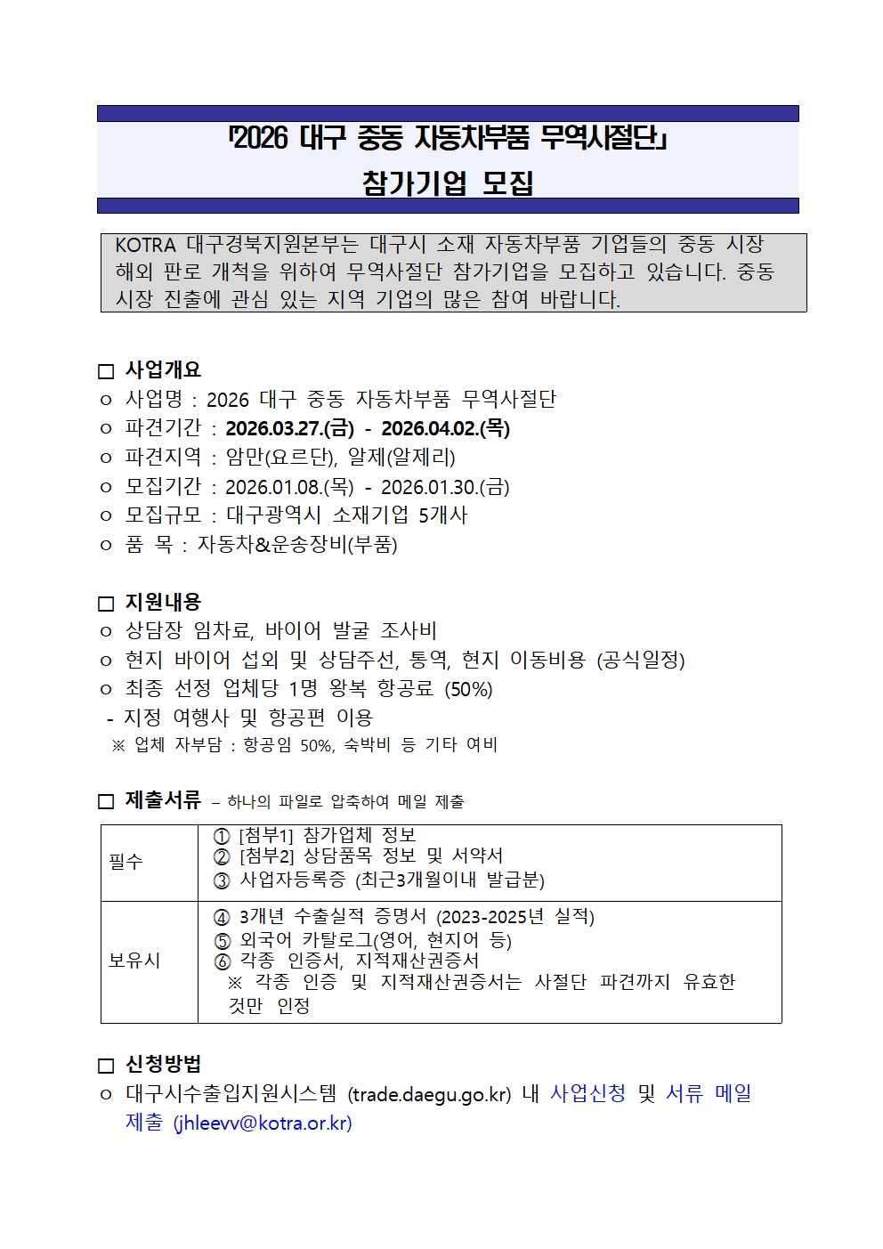 | 2026 대구 중동 자동차부품 무역사절단」 참가기업 모집 | |||