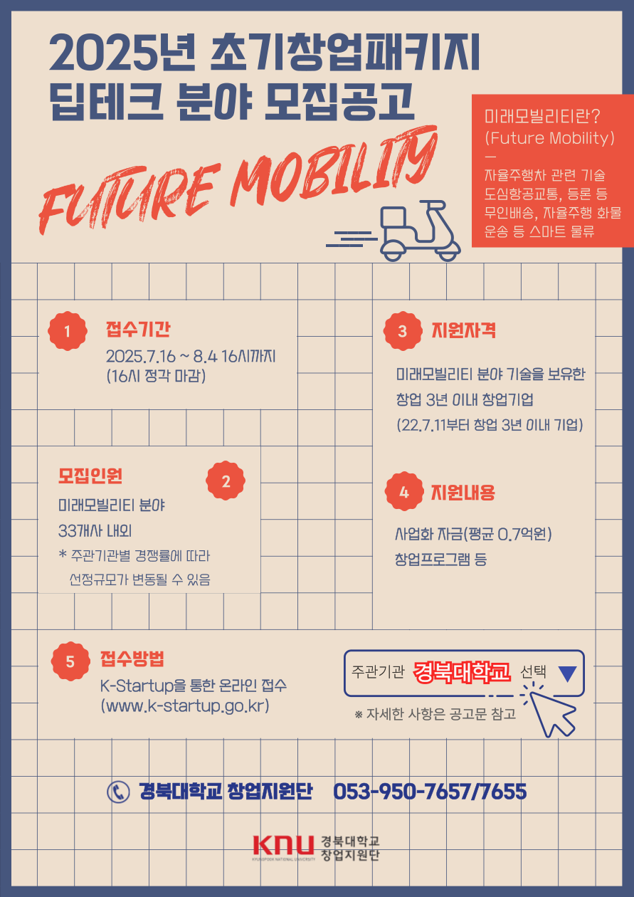 | [경북대학교 창업지원단] 2025년 초기창업패키지(딥테크 분야) 모집 | |||