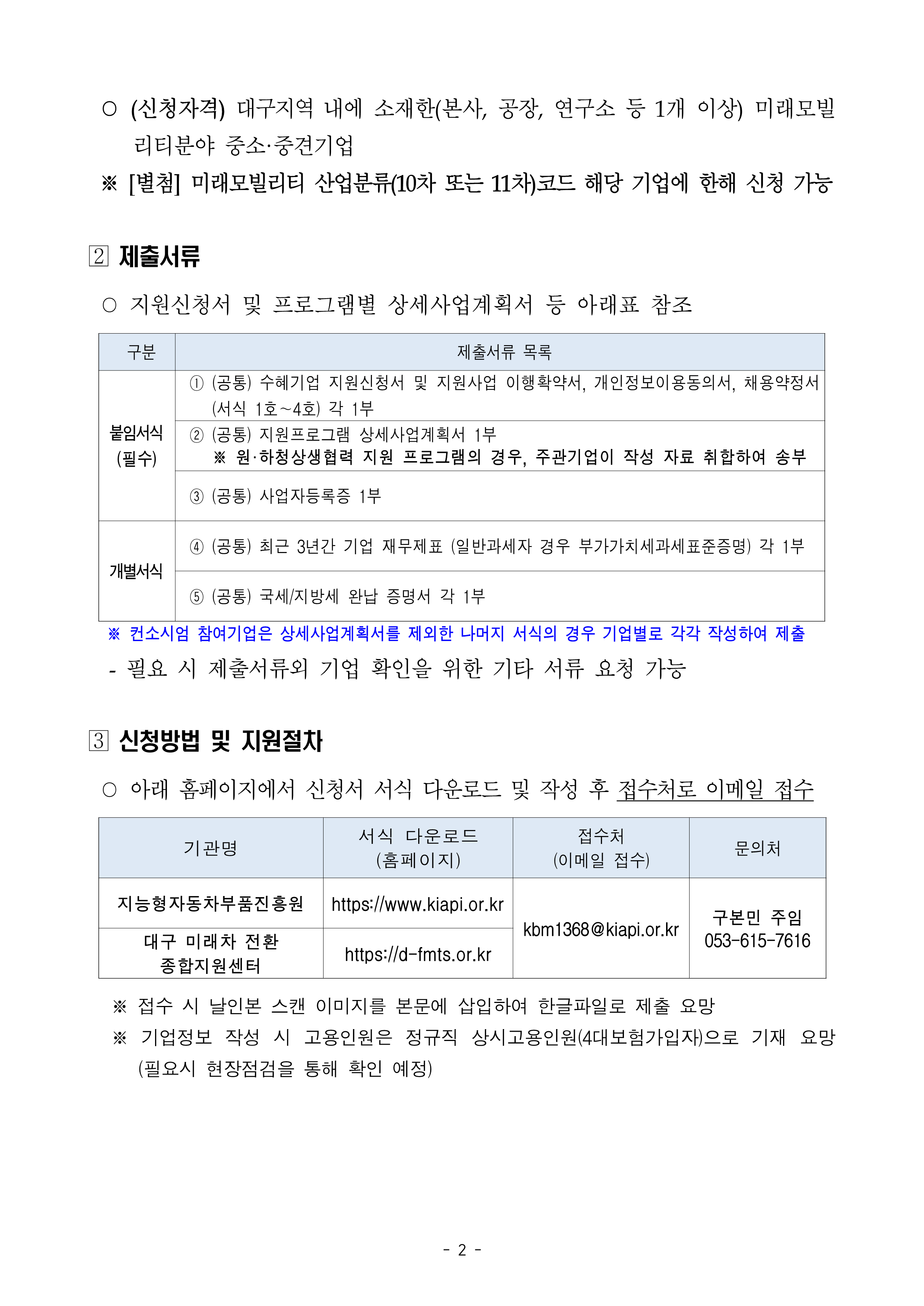 [공고문] 2026년 대구지역 혁신프로젝트 미래모빌리티 기업동반성장 활력프로젝트 기업지원 사업 수혜기업 모집.pdf (206.1K)